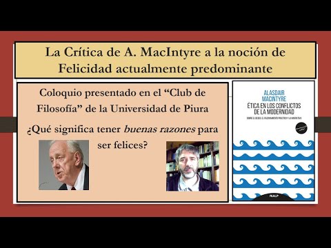 Les comparto la exposición sobre MacIntyre que realicé para la Universidad de Piura (Perú). Agradezco al Dr. Fernando Riofrío Zuñiga por la invitación. Junto a MacIntyre me pregunto lo siguiente: ¿qué significa tener buenas razones para ser felices?
